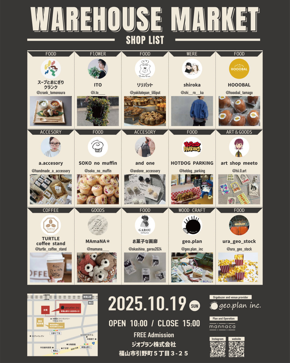 「WAREHOUSE MARKET~倉庫まるごとクリエイティブ~」が、来る10月19日、ジオ・プラン社内にて開催されます!
