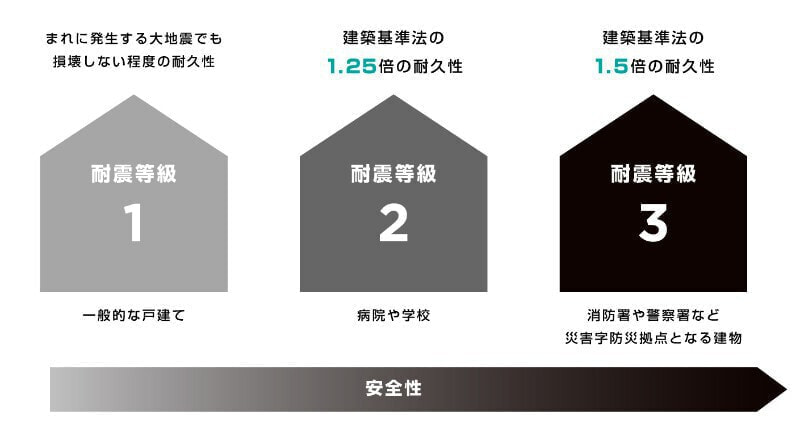 耐震等級は1が低く耐震等級3は1の1.5倍の耐震性があります。