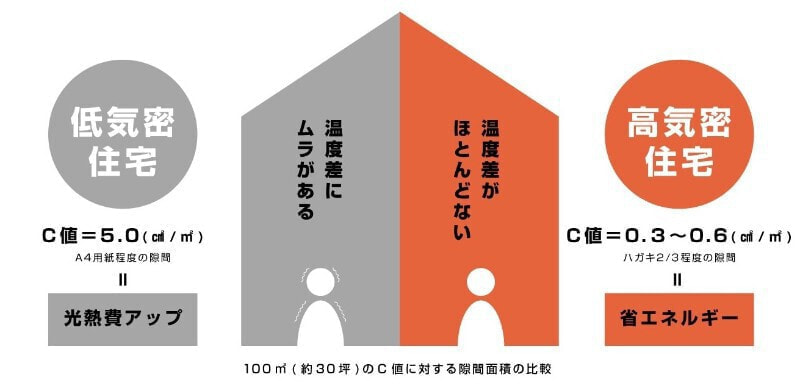 隙間が少ないと計画換気と熱が逃げにくい家になります。