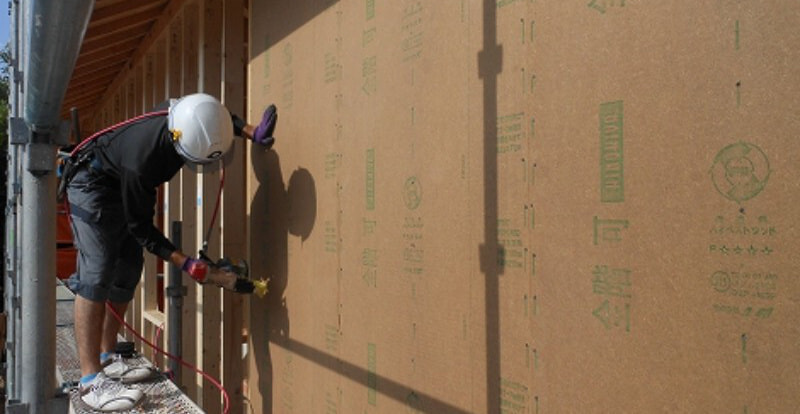 弊社では構造体に耐力面材を施工することで建物を一体化させ地震の力が地面に伝わりやすくしています。