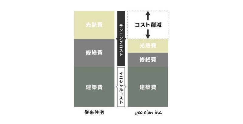 ジオ・プランの新築住宅はデザインだけではなく快適性を確保したうえで、ライフサイクルコストを抑える事を追求しています。