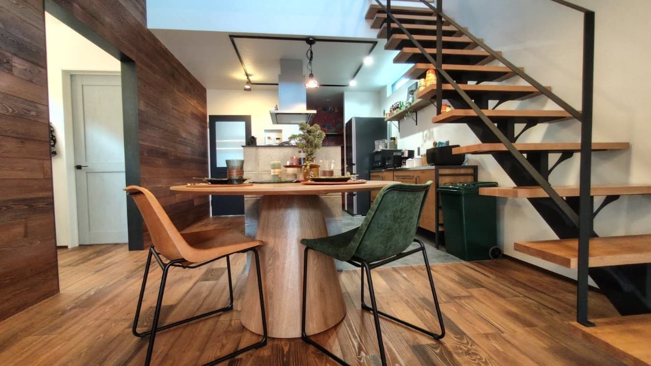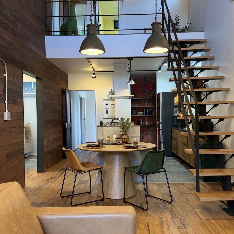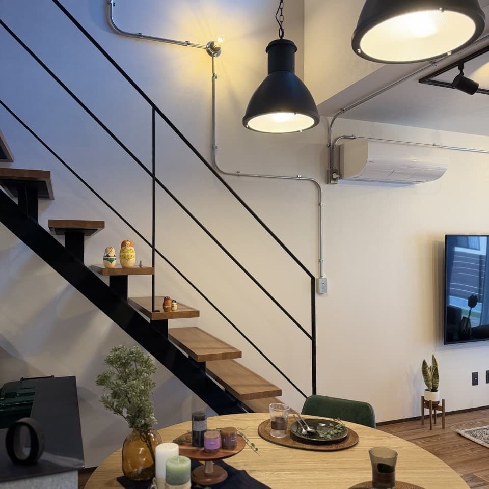 この家では、無垢の板張りやコンクリート、鉄管など素材の手触りが“経年とともに味わいが増す空間”をつくっています。